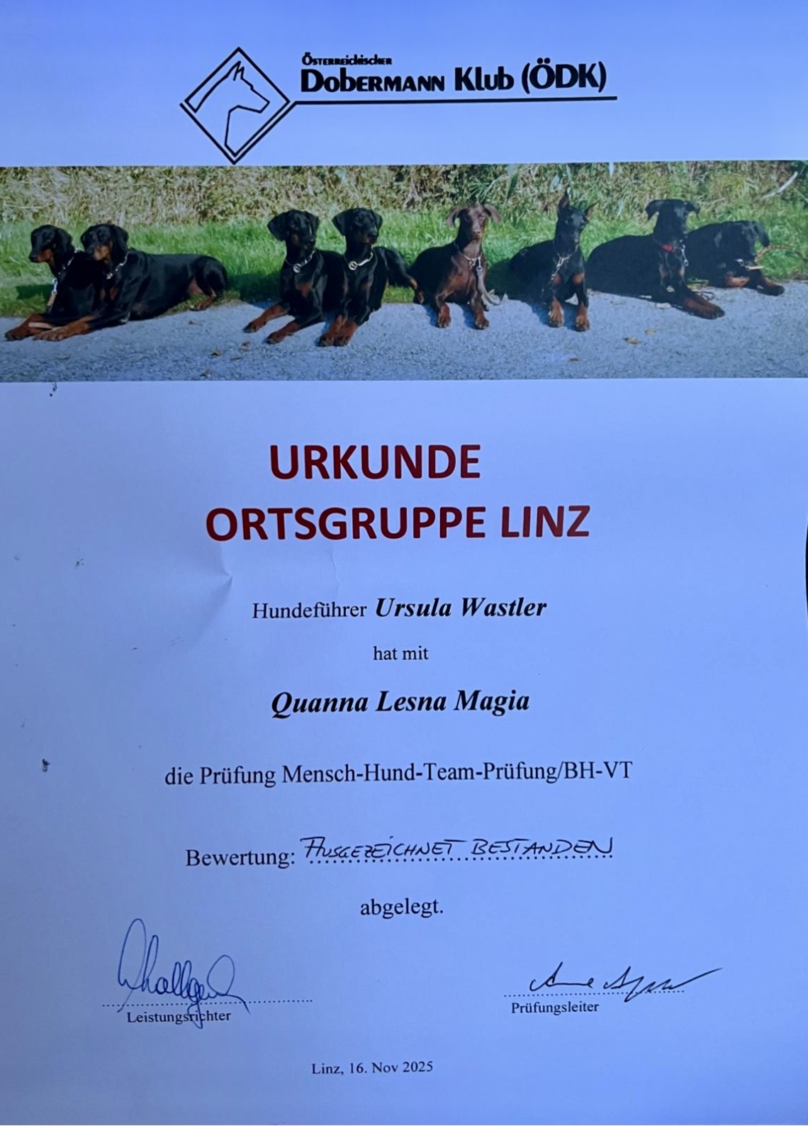 Quanna hat heute die BH/BVT-Prüfung in Linz mit Auszeichnung abgelegt. Wir sind sehr stolz